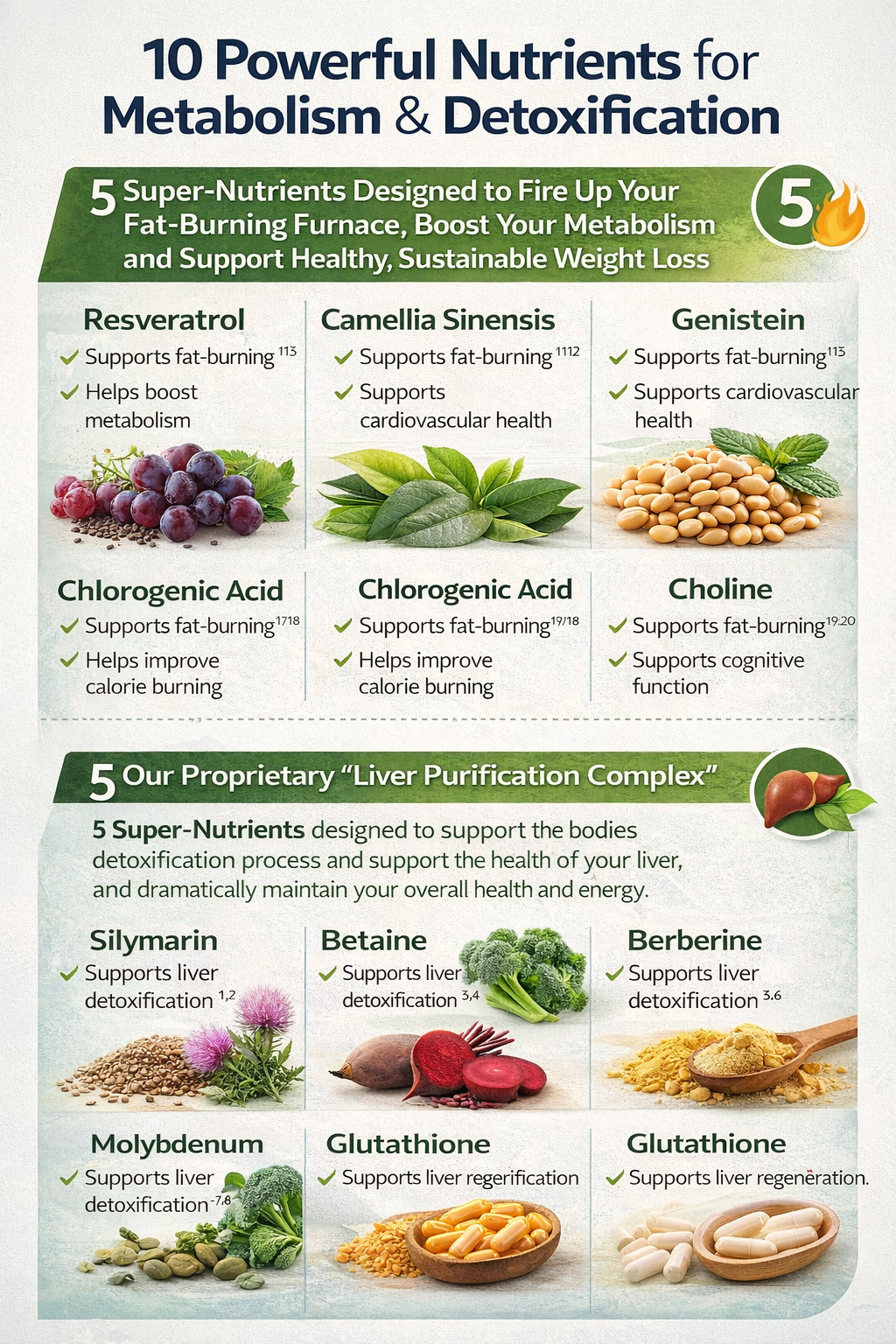 • Resveratrol – Known for antioxidant and metabolic support